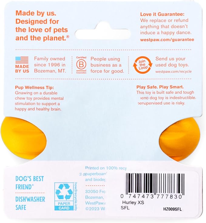 WEST PAW Hurley Dog Bone Chew Toy for Tough Chewers- Safe and Durable Fetch and Chew Toy for Dogs- Dishwasher Safe, Lightweight, Floatable, Made in USA - for Small Dogs - Sunflower Yellow, XS