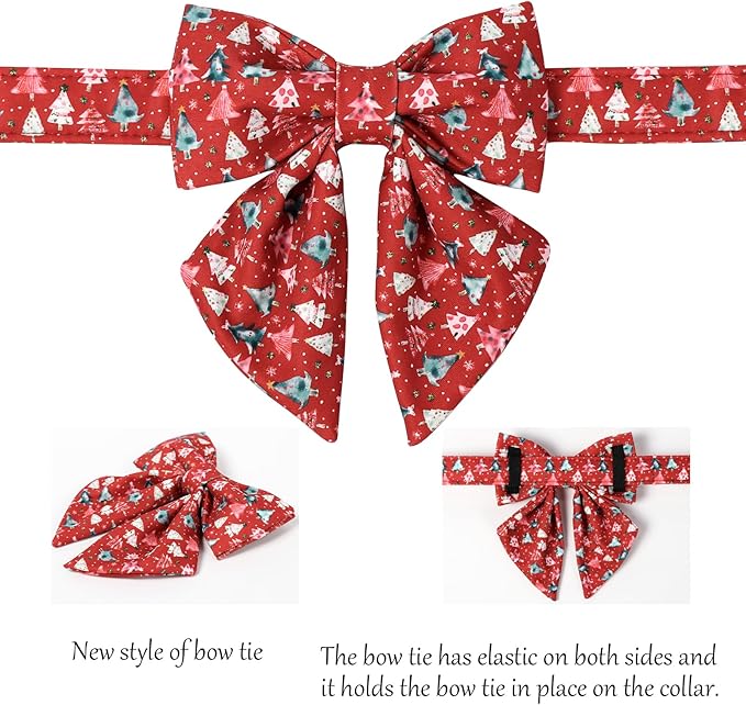 Lionet Paws Christmas Dog Collar with Sailor Bow, Cute Christmas Tree Red Dog Collar Bow Tie for Large Dogs, Neck 16-24 inches