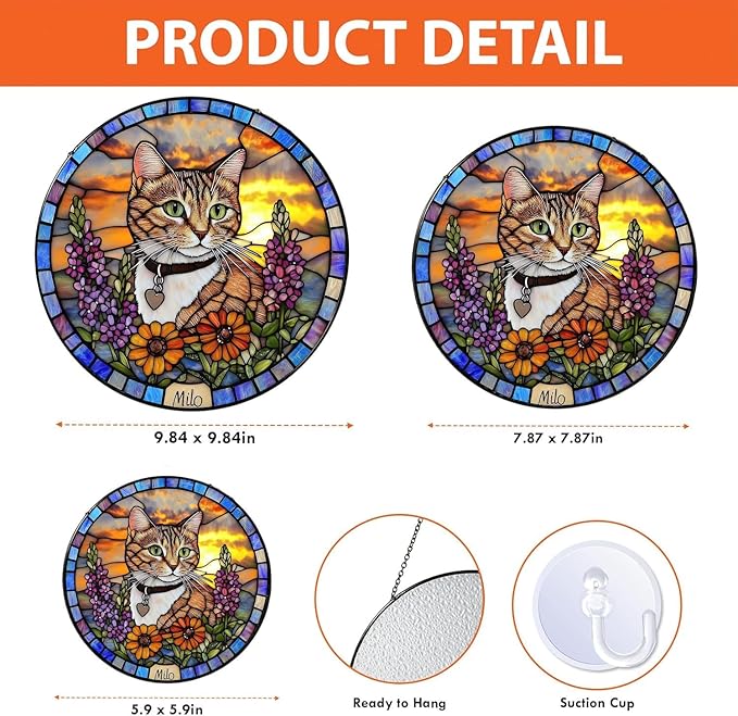 - VERSATILE SIZING OPTIONS: Select from 3.94", 5.9", 7.87", or 9.84" DIAMETERS for a stunning light play, fitting any home or garden spot, enhancing décor while serving as CUSTOM CAT MEMORIAL GIFT or PERSONALIZED GIFTS FOR PET LOVERS to cherish memories.