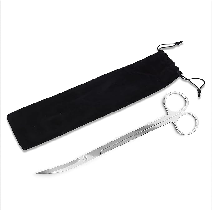 Mandala Crafts 12 Inches Silver Stainless Steel Curved Aquarium Scissors for Trimming Aquatic Plants – Bent Aquascape Scissors for Fish Tanks, Hospital Tanks, Goldfish Bowls, and Terrariums