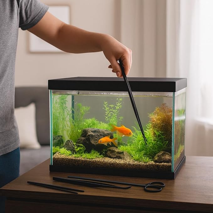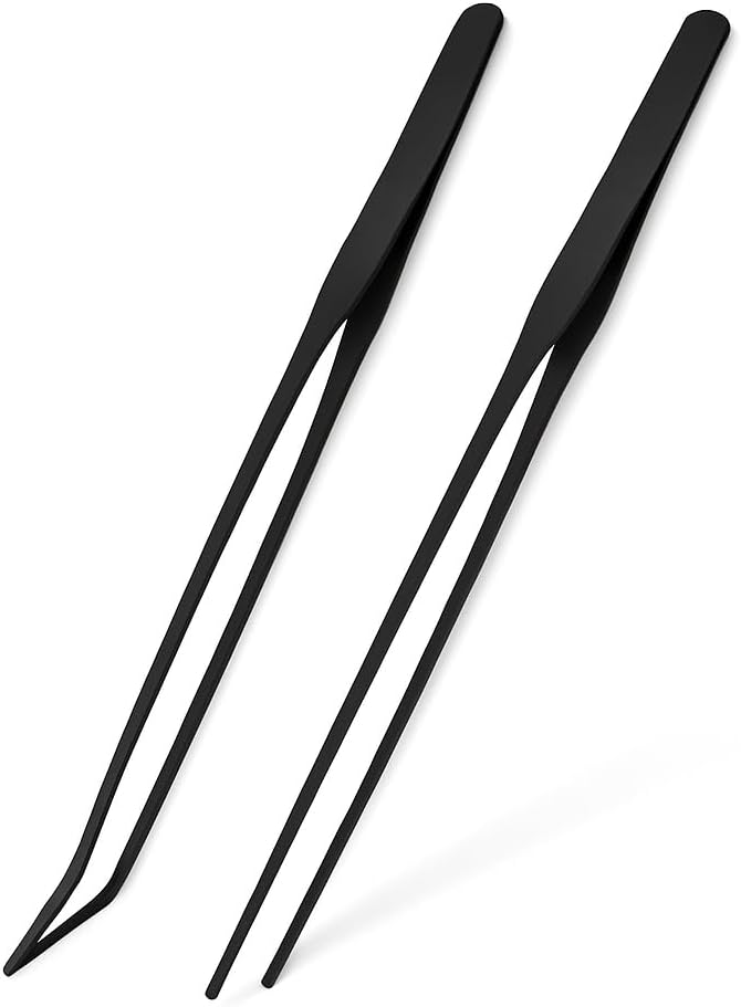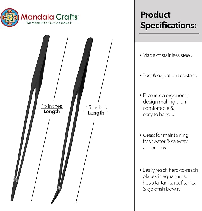 Mandala Crafts 15 Inches Black Stainless Steel Straight and Curved Aquarium Tweezers for Aquatic Plants – Long Aquascape Forceps for Fish Tanks, Hospital Tanks, Goldfish Bowls, and Terrariums