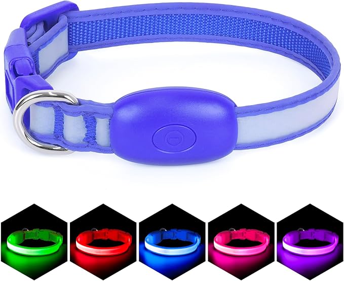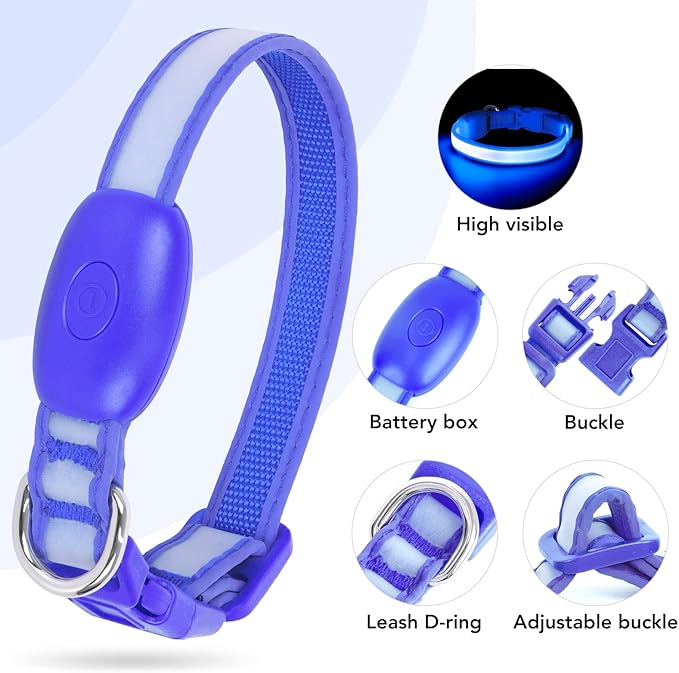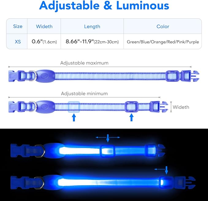 Light up Collar for Small Dog,Vizpet XS Adjustable Size Nylon Collar USB Rechargeable Bright Safety Pet Collar for Cats Small Dogs (Blue, X-Small[ 8.66-11.9 inch/22cm-30cm])