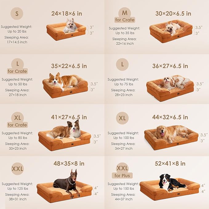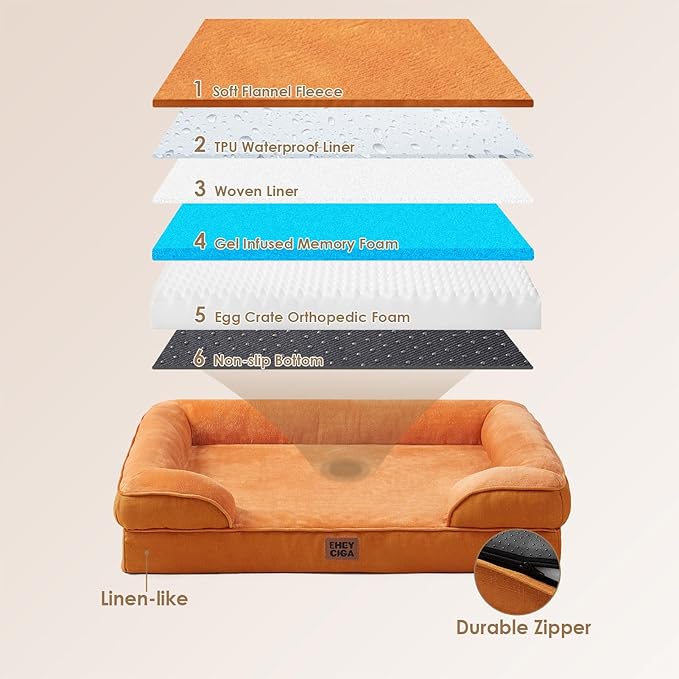 EHEYCIGA Orthopedic XL Dog Beds, Waterproof Memory Foam Dog Bed for Extra Large Dogs, Non-Slip Bottom and Egg-Crate Foam Big Pet Couch Bed with Washable Removable Cover,Pumpkin Orange