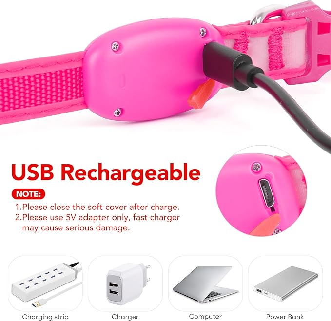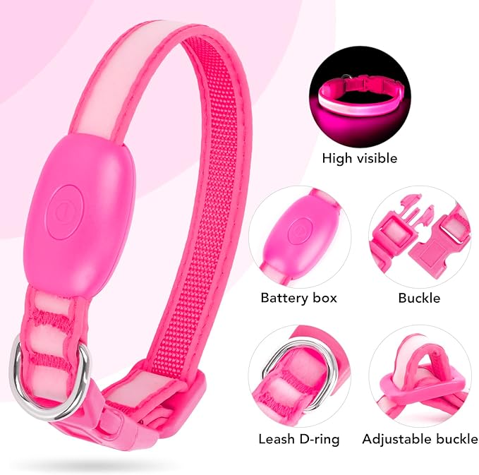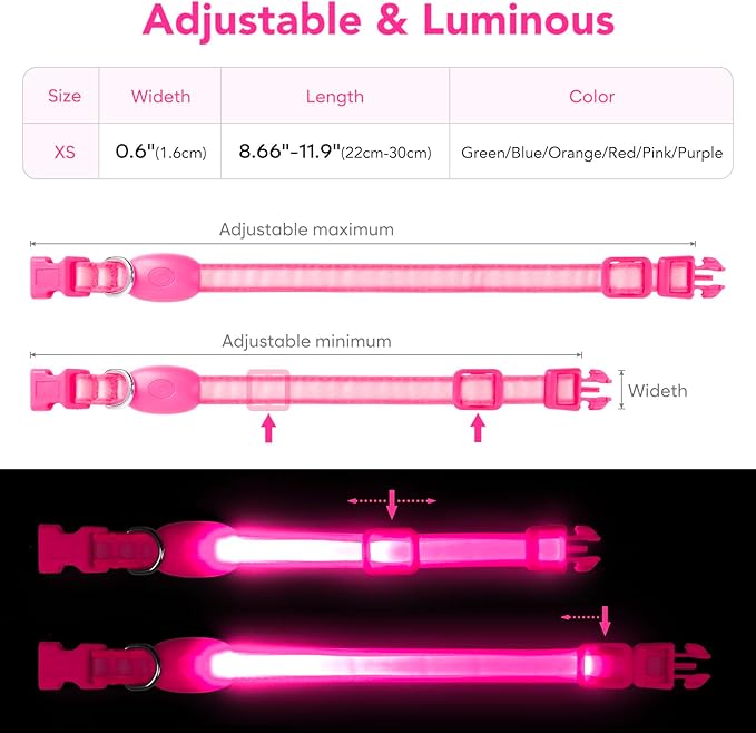 Light up Collar for Small Dog,Vizpet XS Adjustable Size Nylon Collar USB Rechargeable Bright Safety Pet Collar for Cats Small Dogs (Pink, X-Small[ 8.66-11.9 inch/22cm-30cm])