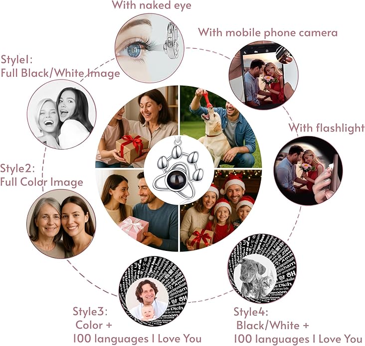 - Clear Projection & Timeless Design – This necklace with picture inside projects your photo clearly and beautifully, combining sentimental value with a stylish design you can wear daily.