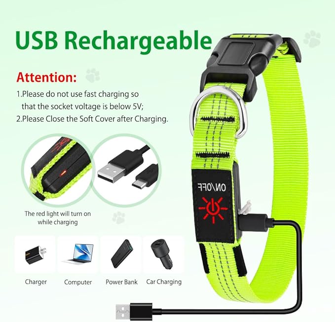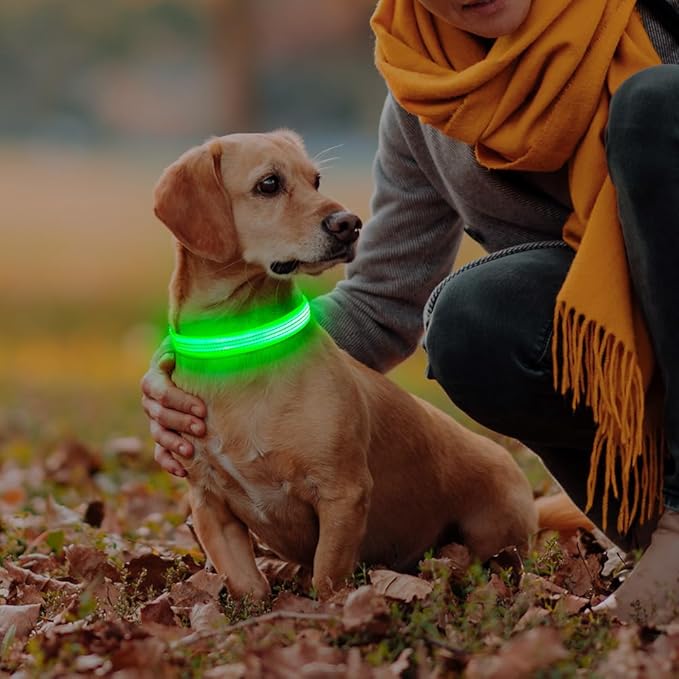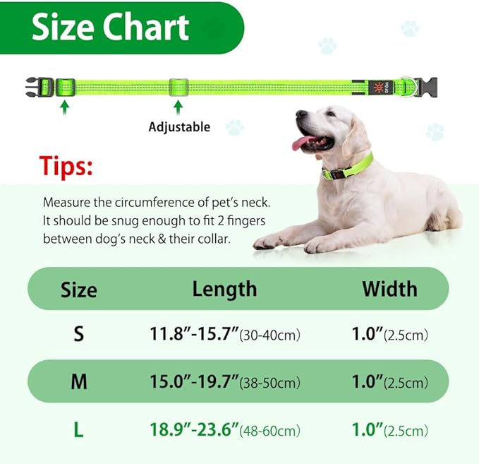 Light Up Dog Collar - Reflective LED Pet Collar Rechargeable Water-Resistant Adjustable Doggie Necklace Glowing Dog Lights for Night Walking (Blue, Large)