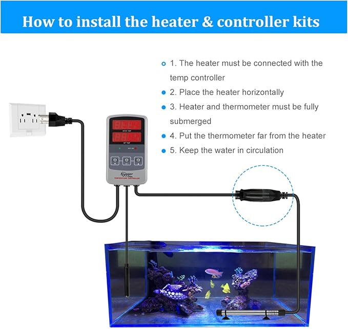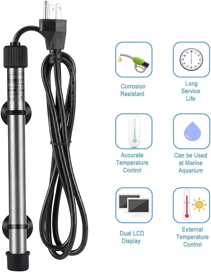 hygger Pinpoint Saltwater Aquarium Heater with Digital Temp Controller, Submersible Titanium Tube Fish Tank Heater for Coral Reef 50 Watt