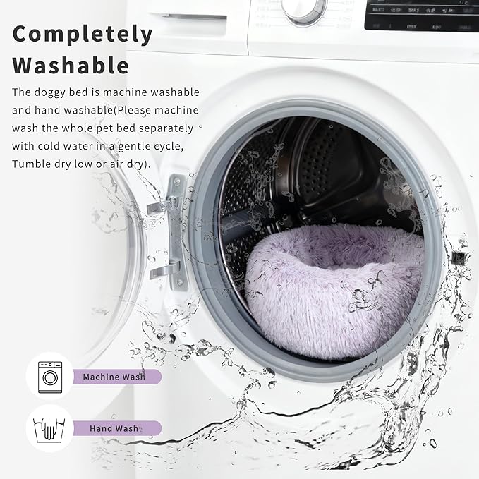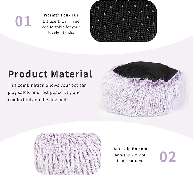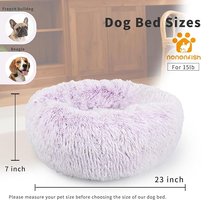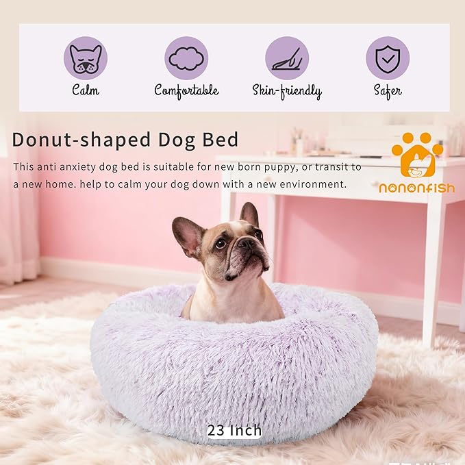 Dog Bed Medium Size 23 Inch Anti-Anxiety Donut Dog Cuddler Bed, Gradient Purple Fluffy Faux Fur Plush