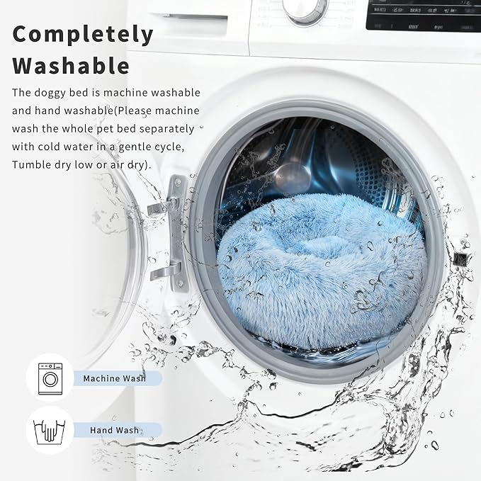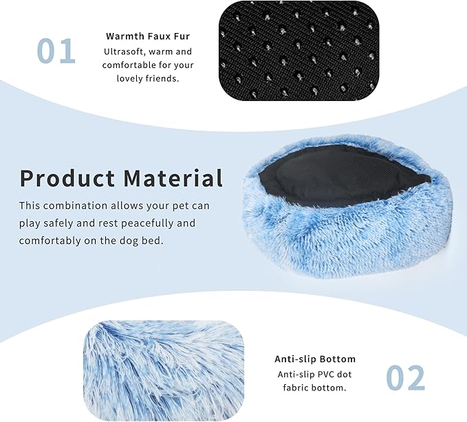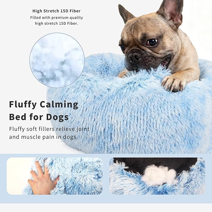 Blue Dog Bed for Small Dogs Fluffy Anti-Anxiety, Calming 23 inch Beds Washble Snuggle Safe Gradient Blue