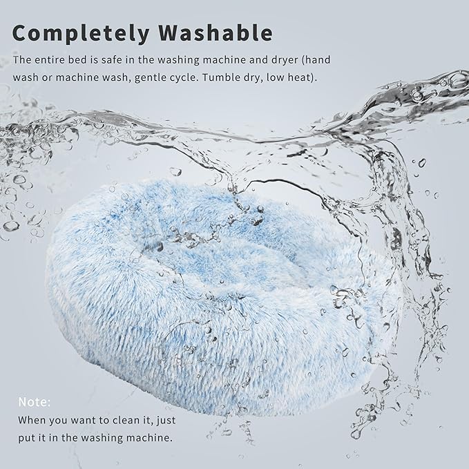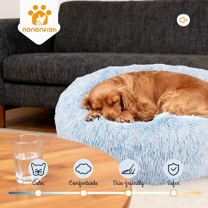 Dog Beds for Medium Dogs Washable Calming Blue Fluffy and Soft Anti Anxiety Faux Fur Round 30 in Pet Bed for Doggie