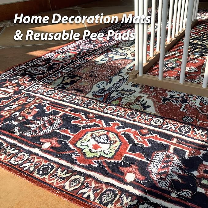 nunubaby 2PACK Washable Pee Pads for Dogs, Stylish, Non-Slip and Leak-Proof Pee Pads. Reusable Potty Pads for Dogs for Crates and Floors.(Red/Rect, 72" x72" )