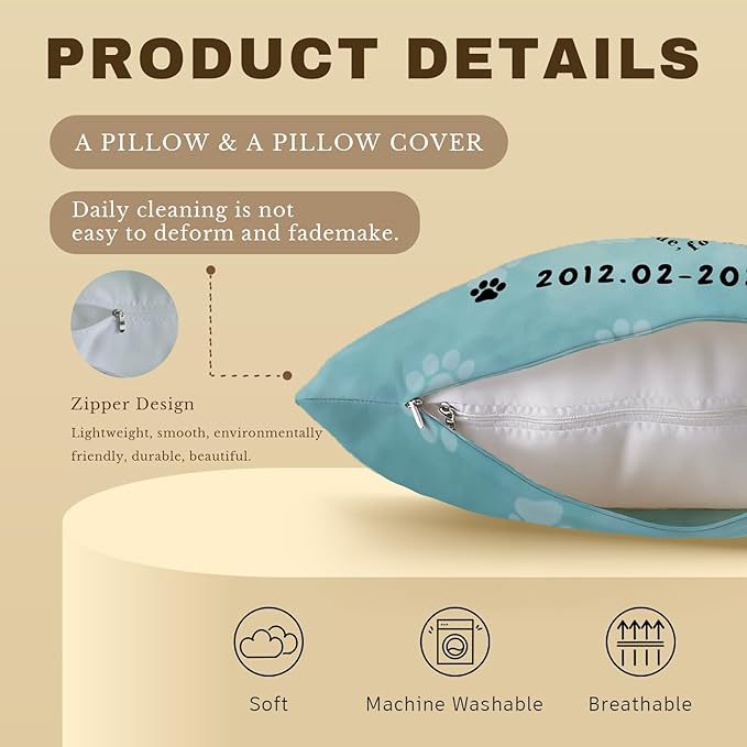 - Soft Pillow : Made of high quality polyester fabric, delicate and skin-friendly touch, providing lasting comfort as you reminisce about precious moments with your pet. It's a heartfelt reminder of the love and companionship that will forever remain in your heart