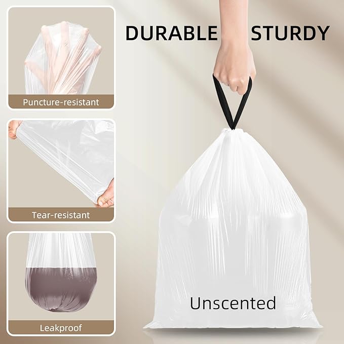 4 Gallon Mini Drawstring Trash Bags, Small Garbage Bags by KSSKSS, Code a fit 15-22 Liter, 4-6 Gal, White Trash Bin Liners for Home Office Kitchen Bathroom Bedroom, 120 Counts
