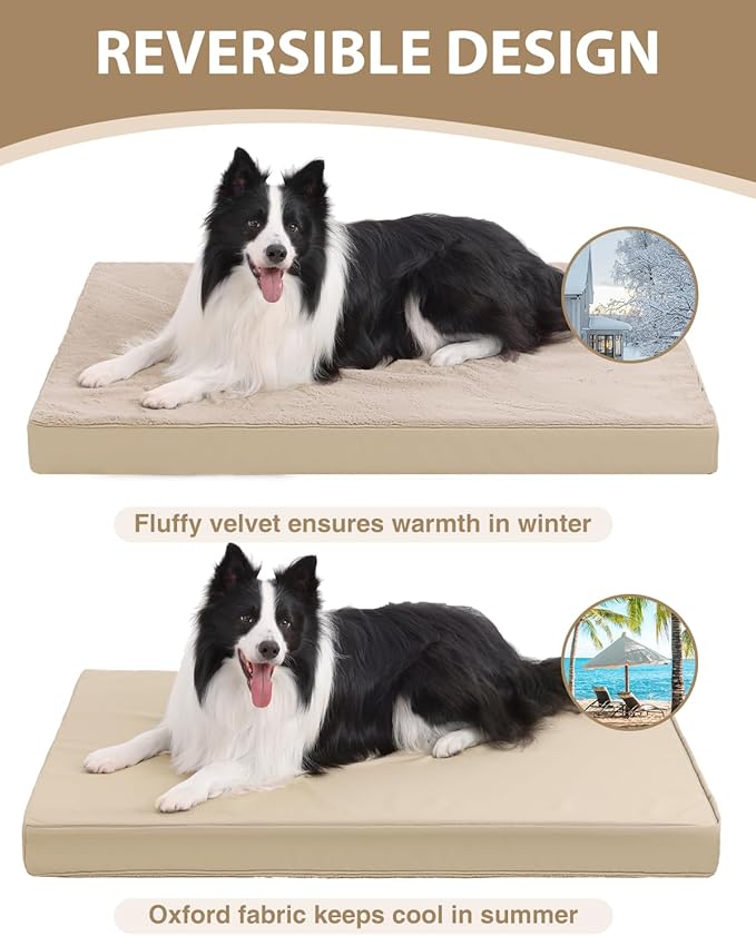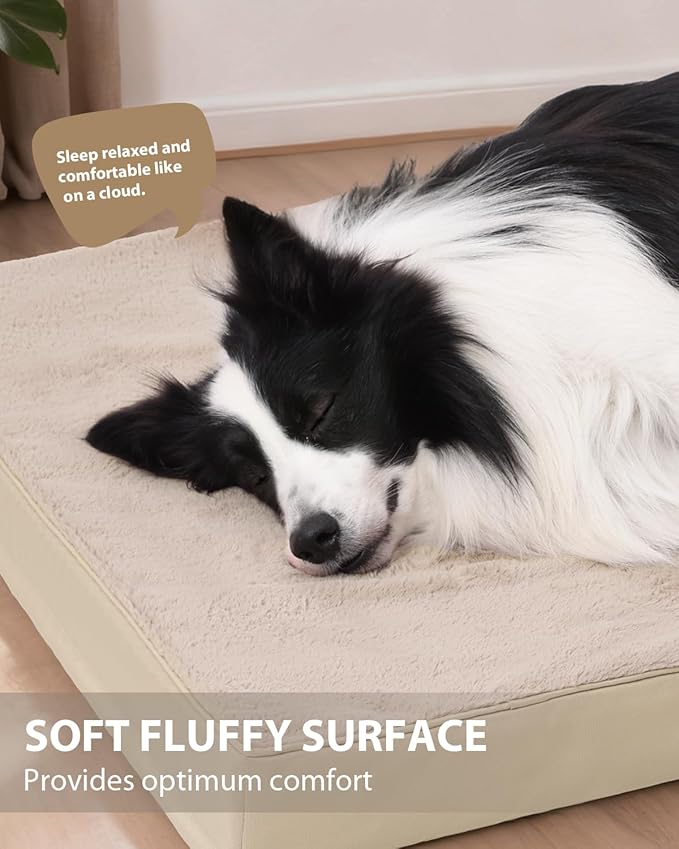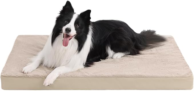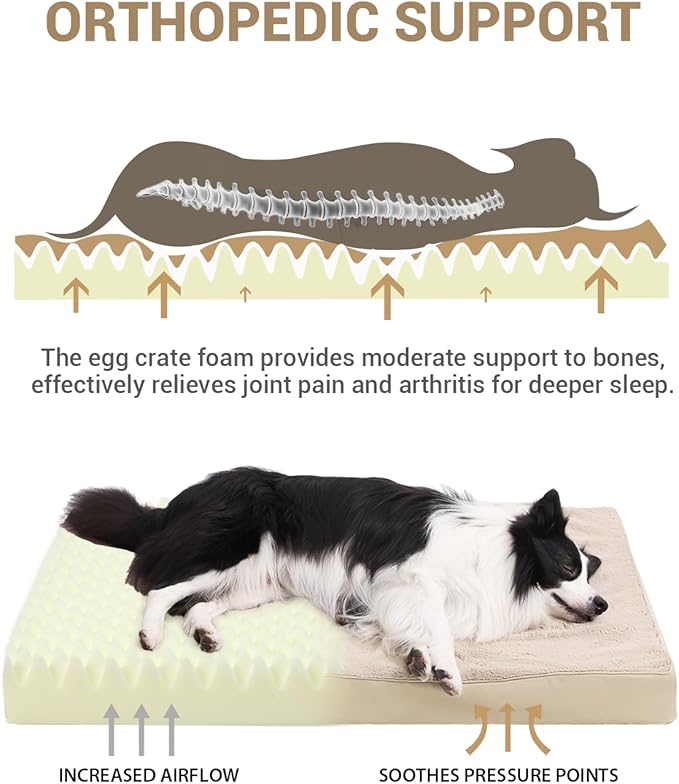 KSIIA Orthopedic Dog Bed Crate Waterproof Pet Mats for Large Dogs Deluxe Plush Washable Pet Bed with Egg Crate Foam & Removable Cover, 35 x 22 Inch, Khaki