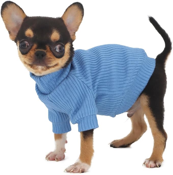 LOPHIPETS Small Dog Turtleneck Sweaters for Teacup Chihuahua Yorkie Puppy Cat Clothes-Light Blue/XS