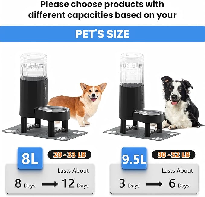 CZPET Elevated Dog Water Bowl Dispenser with Mat for Large Dogs,Tall Raised Pet Waterer Stand,Relieve Neck Pressure,Large Capacity and Drinking Area Noise-Free for Pets Dogs (9.5L+Stand+Mat,Black)