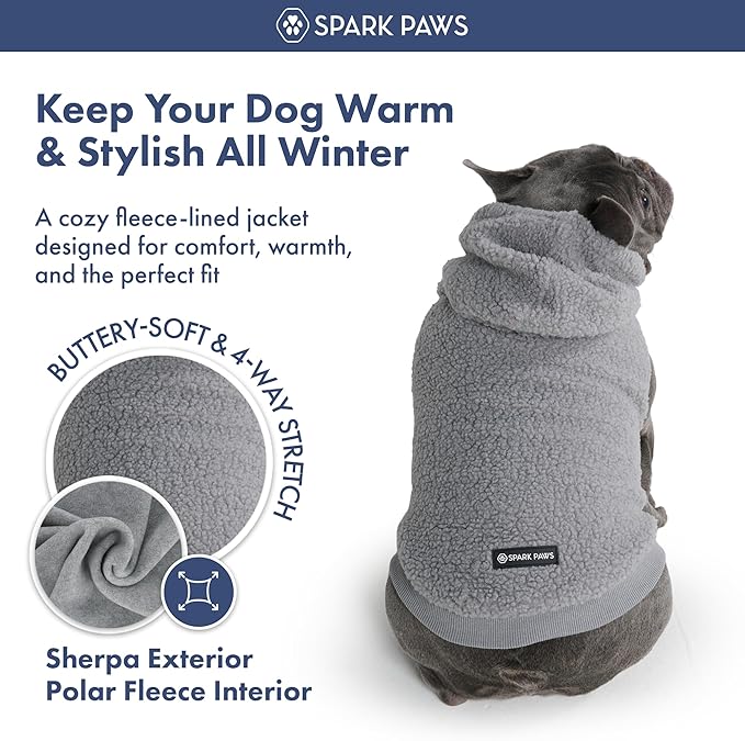Spark Paws Fleece Dog Jacket, Hooded Sweater Vest, Warm Coat for Winter - Suitable for Small Medium Large XL XXL Breeds - Silver Grey - L