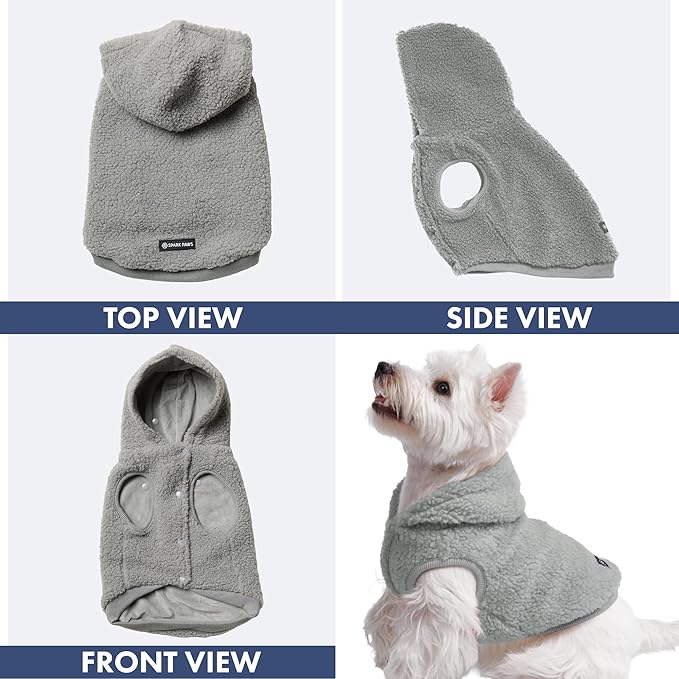 Spark Paws Fleece Dog Jacket, Hooded Sweater Vest, Warm Coat for Winter - Suitable for Small Medium Large XL XXL Breeds - Silver Grey - XL
