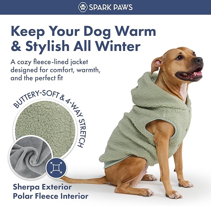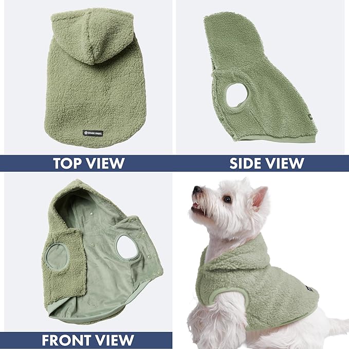 Spark Paws Fleece Dog Jacket, Hooded Sweater Vest, Warm Coat for Winter - Suitable for Small Medium Large XL XXL Breeds - Light Green - S