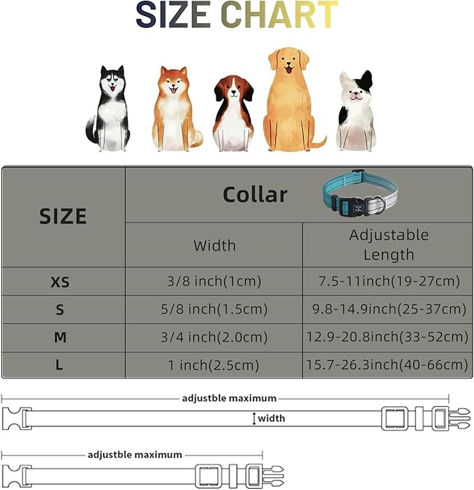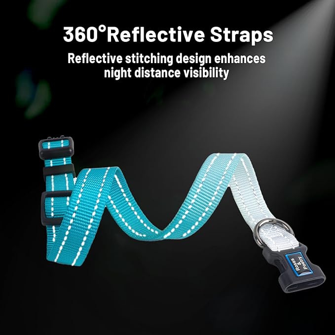 Roses&Poetry Dog Collars for Medium Dogs, Adjustable Durable Pet Collars for Small Medium Large Dogs (Teal-M)