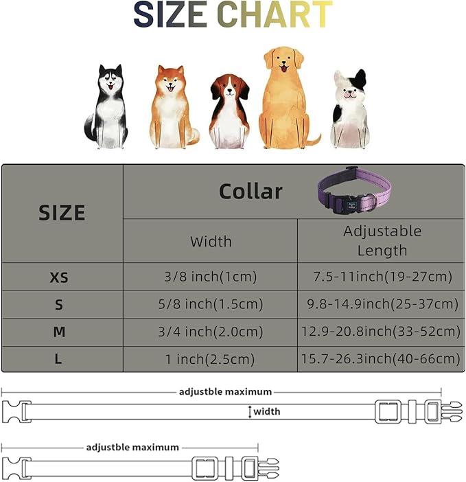 Roses&Poetry Dog Collars for Medium Dogs, Adjustable Durable Pet Reflective Dog Collar for Small Medium Large Dogs(Lightpurple-M)