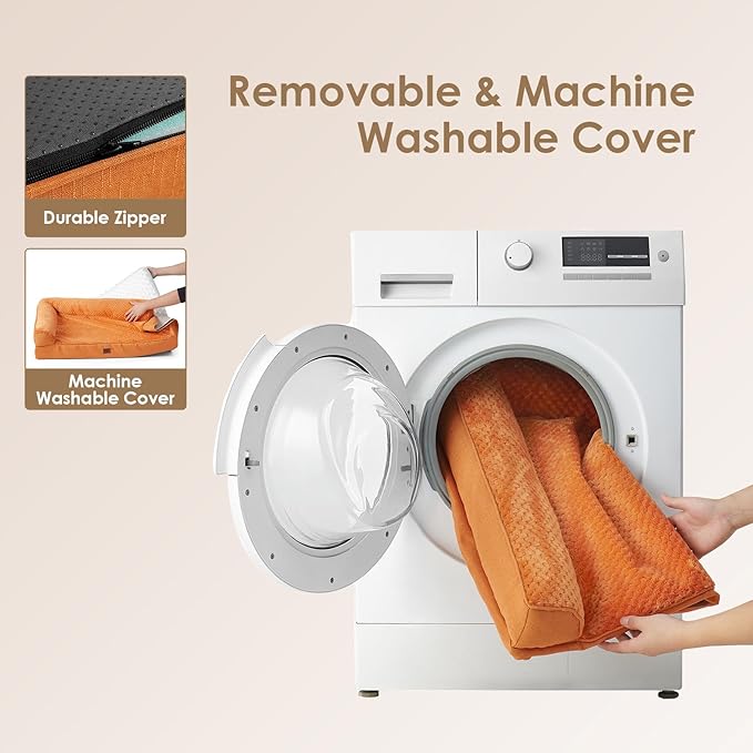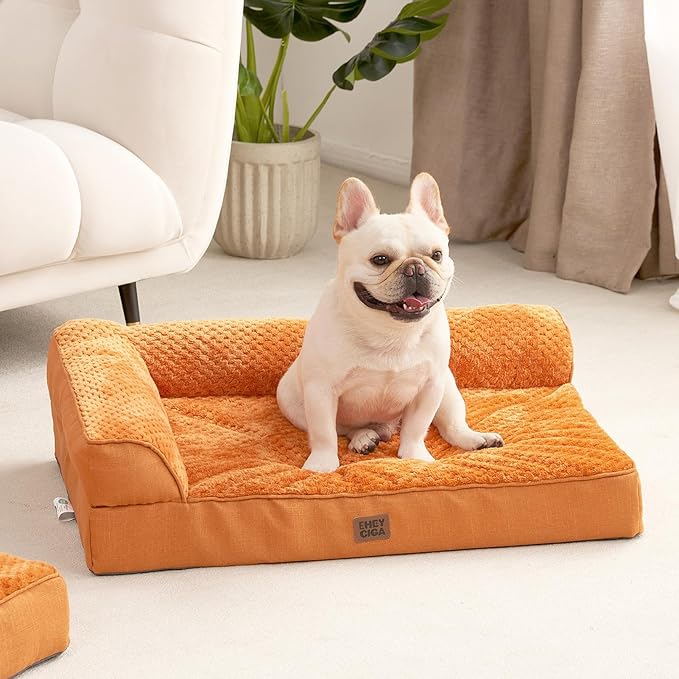 EHEYCIGA Memory Foam Dog Bed Medium Sized Dogs, Waterproof Dog Bed Orthopedic with Washable Removable Cover, Non-Slip Pet Bed Couch for Crate, 30x20x6 Inches, Pumpkin