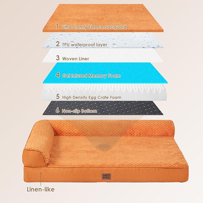 About This L-SHAPED DESIGN - EHEYCIGA orthopedic dog bed has a specific and unique l-shaped design, which provides extra support... Read more