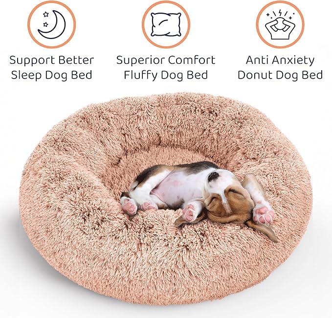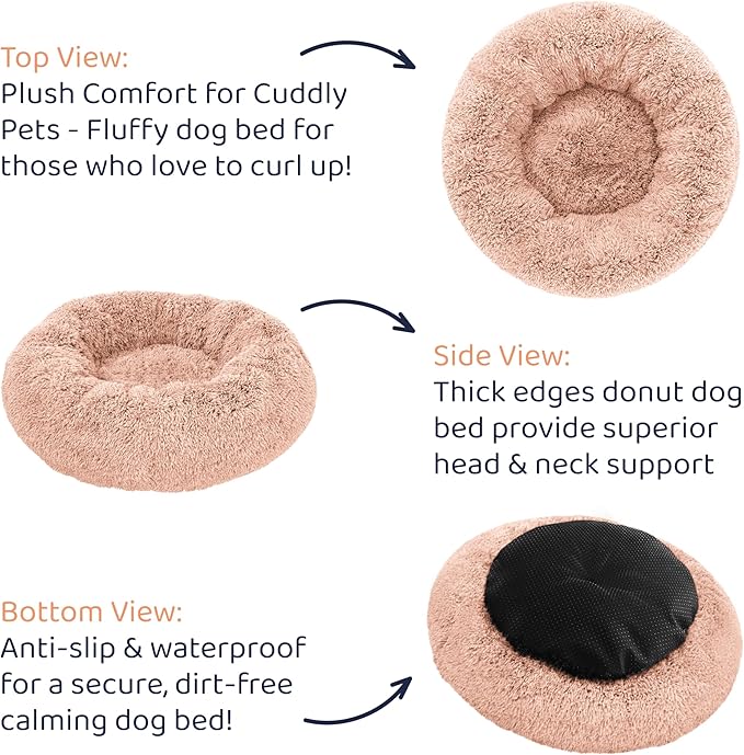 Donut Dog Bed - Premium Comfort for Anxiety Relief - Fluffy & Calming Design with Ultra-Plush Support | Cozy Round Dog Bed with Super Soft Circle Style (Pink, Large)