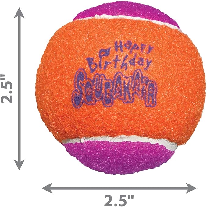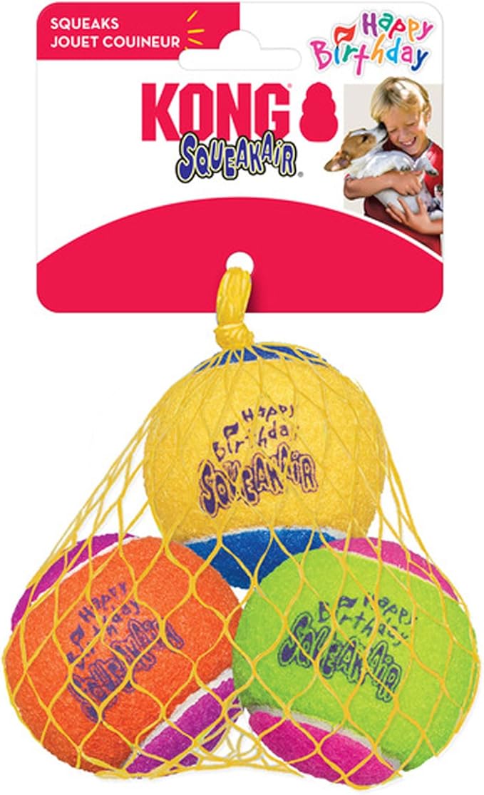 KONG - SqueakAir Birthday Balls (3 Pack) – Durable Non-Abrasive Fetch Toy with Built-in Squeaker, Assorted Colors (2 Packs)