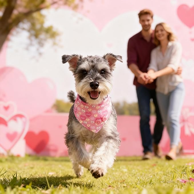 EXPAWLORER Valentine's Day Dog Collar and Leash Set - Pink Heart Dog Bow Tie and Dog Bandana Collar with Bell, Dog Leash Tangle Free, Adjustable Collars for Small Dogs Cats, Holiday Ideal Gift, S
