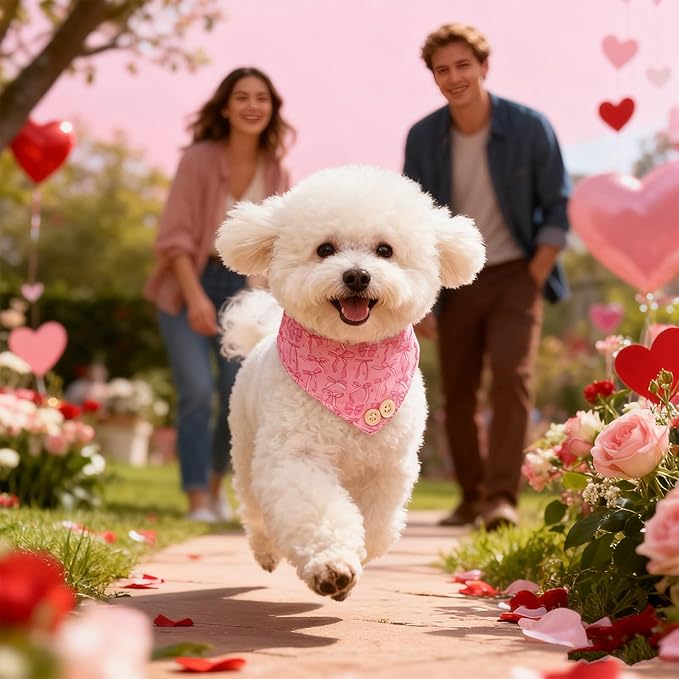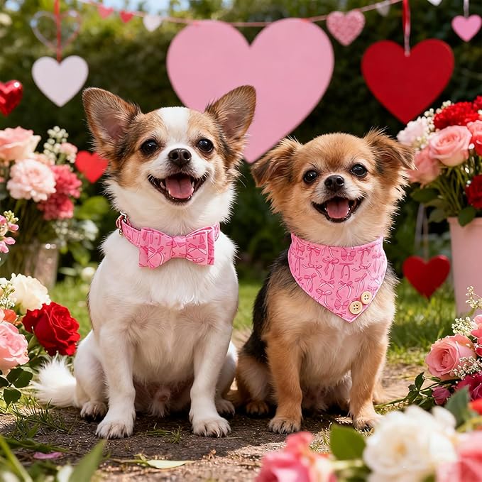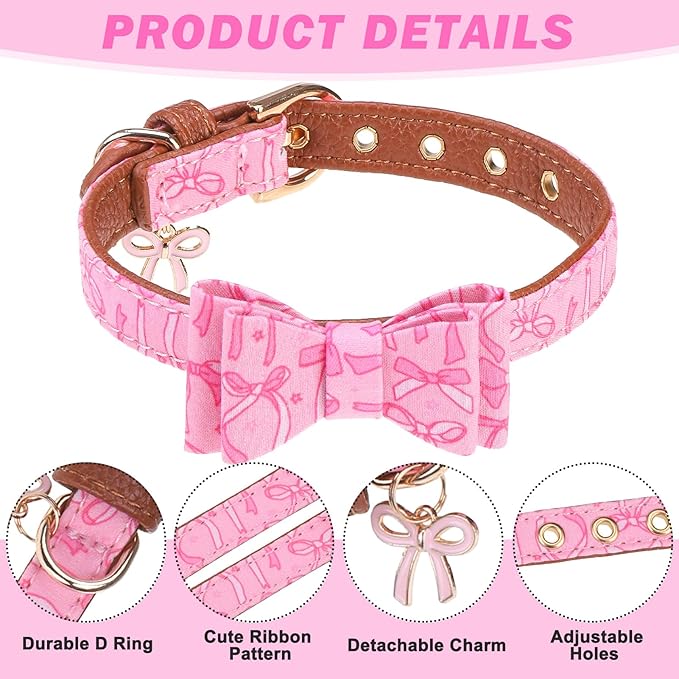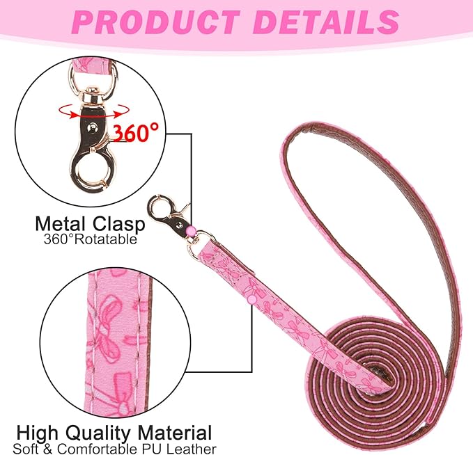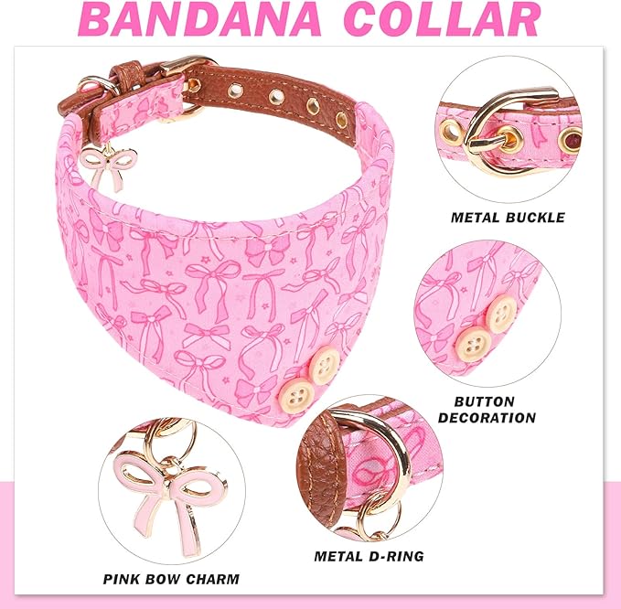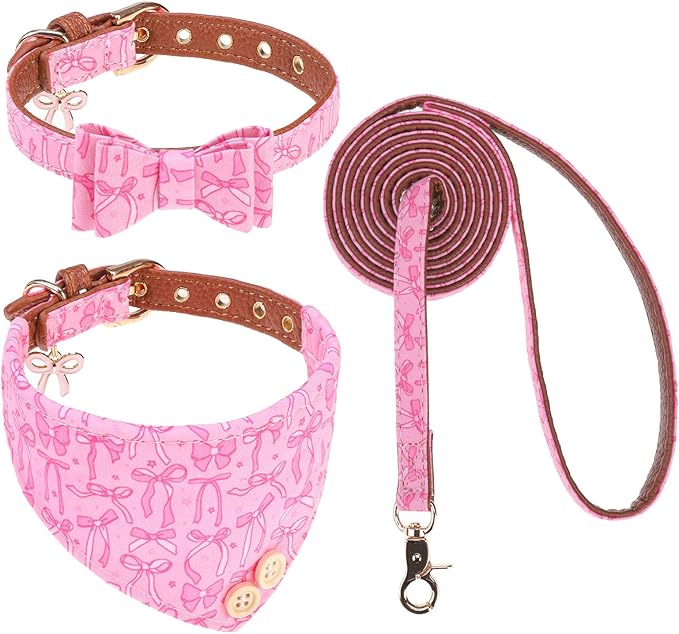 EXPAWLORER Dog Collar and Leash Set - Pink Bowknot Dog Bow Tie and Dog Bandana Collar with Bell, Dog Leash Tangle Free, Adjustable Collars for Small Medium Large Dogs Cats, Holiday Ideal Gift, S