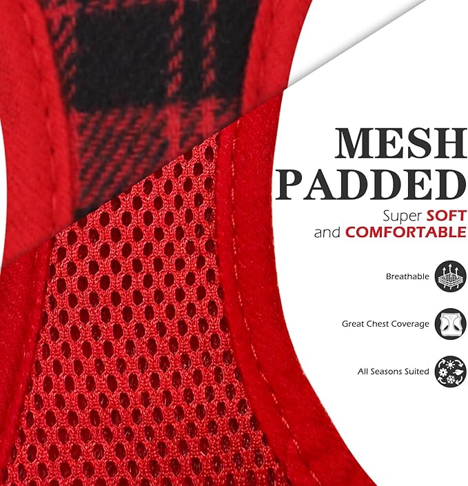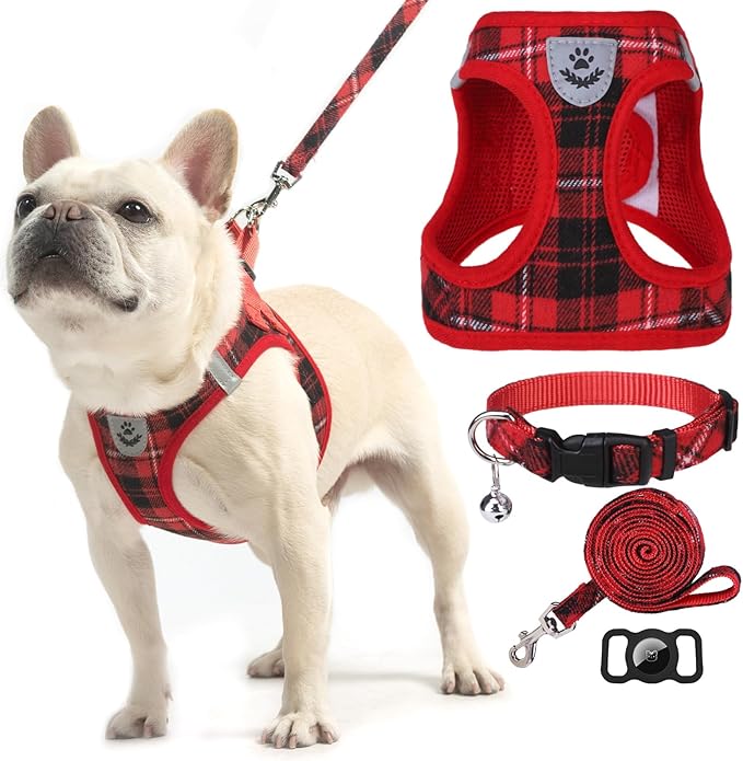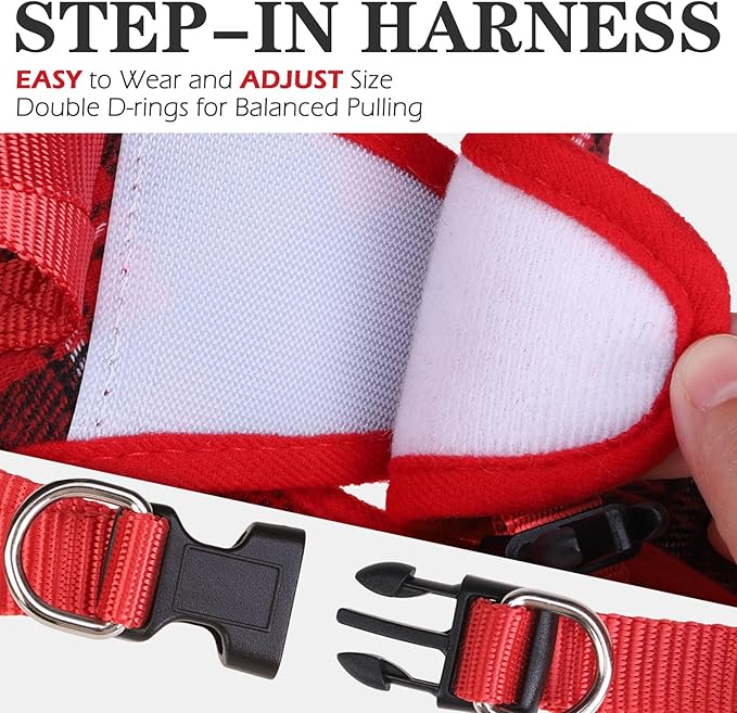 EXPAWLORER Classic Plaid Puppy Harness - Small Dog Harness and Leash Set - Dog Collar and Leash Set with AirTag Holder, Soft Padded Step in Dog Vest Harness No Pull Reflective for Outdoor, Red XXS