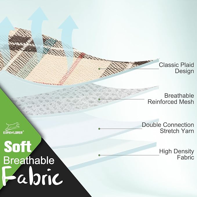 EXPAWLORER Plaid Small Dog Harness and Leash Set with AirTag Holder - Soft Padded Step in Dog Vest Harness Medium Sized Dog, No Pull Reflective Puppy Harness, Collar and Leash for Walking, Khaki XXS