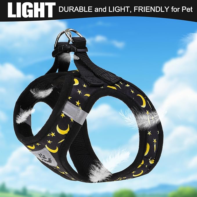 EXPAWLORER Small Dog Harness and Leash Set - Cute Puppy Harness Leash Dog Collar with AirTag Holder Silicone Case, Soft Padded Step in Pet Vest Reflective for Outdoor Walking, Star-Moon S