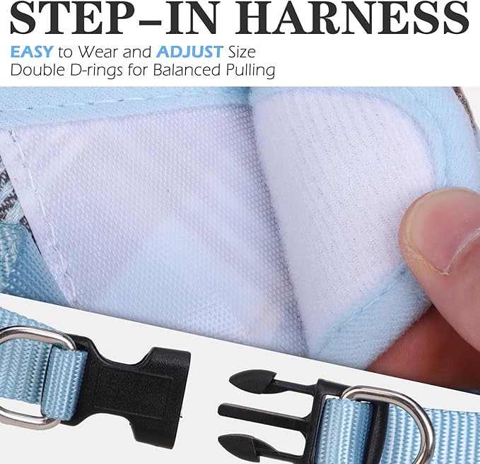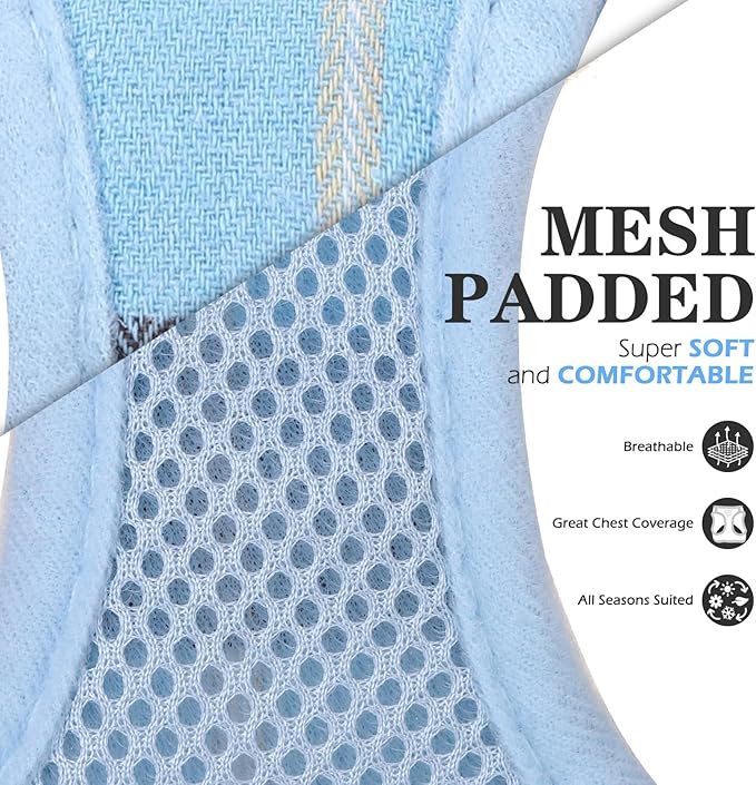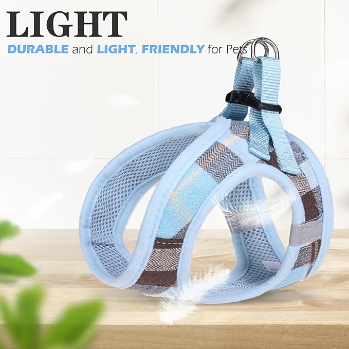 EXPAWLORER Classic Plaid Puppy Harness - Small Dog Harness and Leash Set - Dog Collar and Leash Set with AirTag Holder, Soft Padded Step in Dog Vest Harness No Pull Reflective for Outdoor, Blue XXS