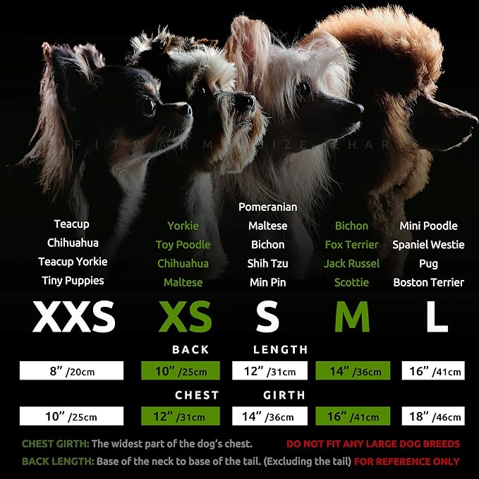 About This FOR SMALL DOG BREEDS. Please priority follows the chest size. Size Large, fits 16" back, 18" chest. Recommended... Read more