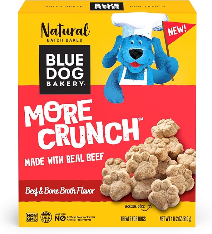 Blue Dog Bakery More Crunch Large Beef & Bone Broth Dog Treats, Dog Biscuits for Large Breeds, Healthy Treats, All Natural, 18 oz (Pack of 1)