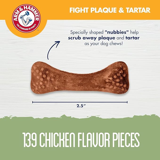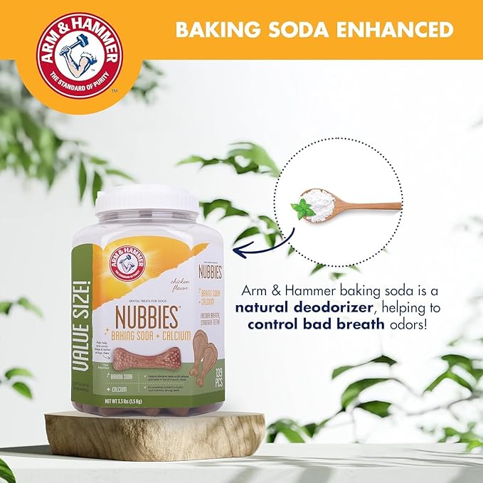 Arm & Hammer for Pets Nubbies Dental Treats for Dogs with Baking Soda and Calcium, Treat Chews Help Fight Bad Breath, Plaque & Tartar, Chicken, Value Bucket, 139 Pcs, 2-Pack (Packaging May Vary)