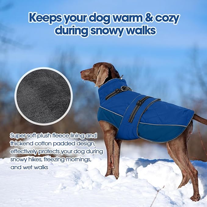 QBLEEV Warm Dog Jacket - Reflective, Adjustable Winter Coat with Turtleneck for Cold Weather, Waterproof Fleece Snowsuit for Small, Medium, Large Dogs