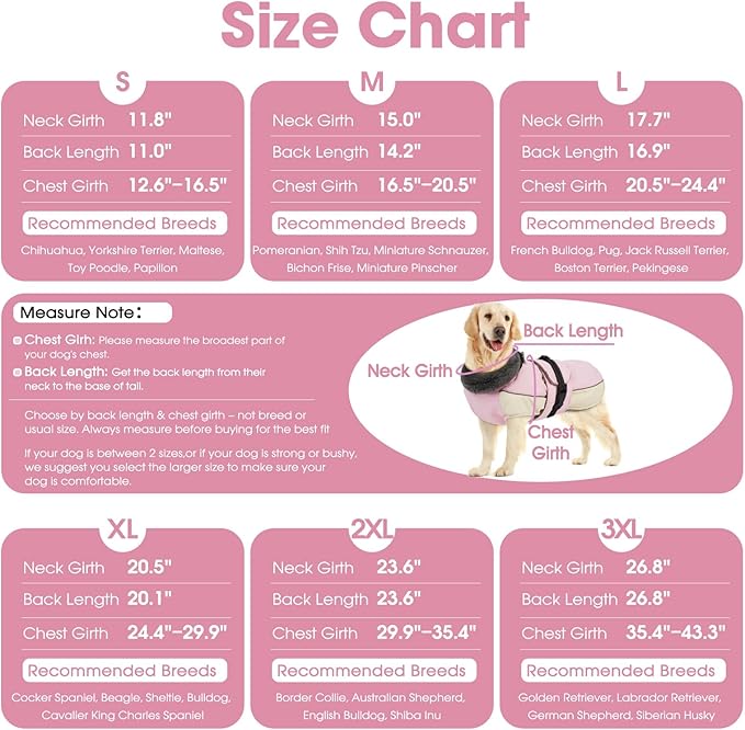 QBLEEV Warm Dog Jacket - Reflective, Adjustable Winter Coat with Turtleneck for Cold Weather, Waterproof Fleece Snowsuit for Small, Medium, Large Dogs